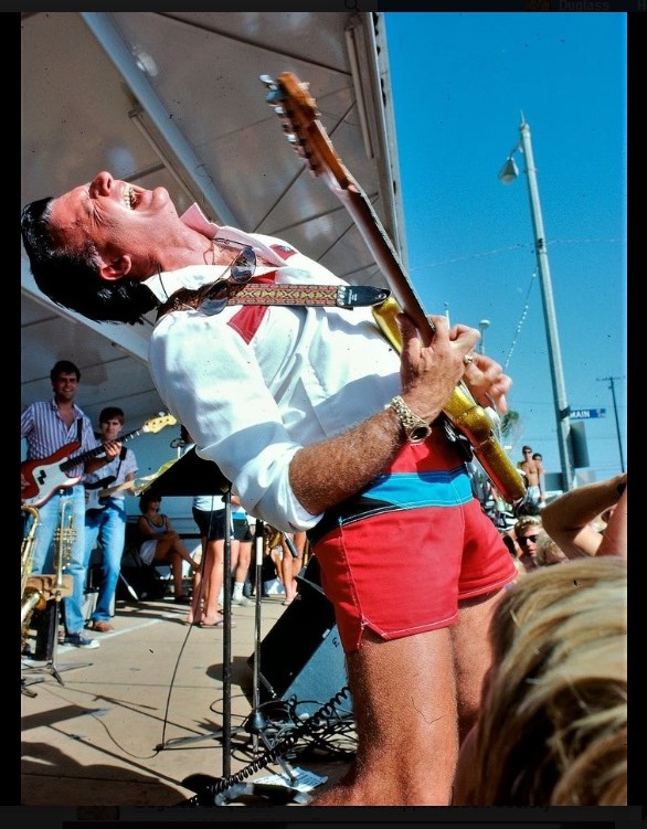 Das zweite Foto zeigt Dick Dale in Extase beim Spielen seiner Gitarre im