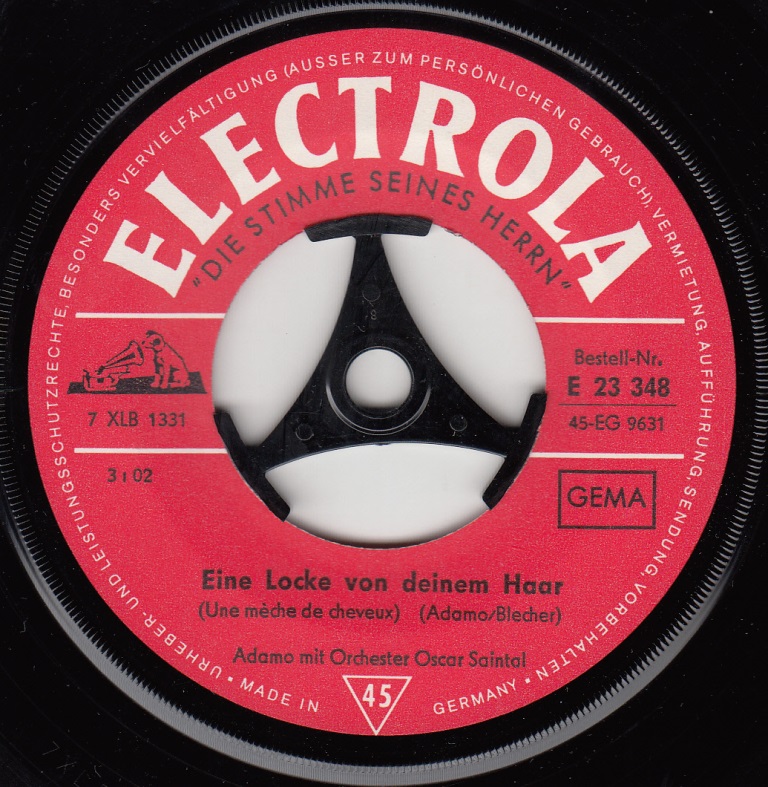 *) Was mir bei der ersten Schallplatte des Italieners, der vier Jahre alt war, als er mit seinen Eltern nach Belgien kam, auffiel war, dass es mit seinem Namen offenbar "Verwechslungs-Probleme" gab. Das die ersten zwei Titel die in Belgien aufgenommen wurden - man sieht das an dem Präfix "319" - in italienischer Sprache waren, ist bei einem geborenen Italiener weniger überraschend.