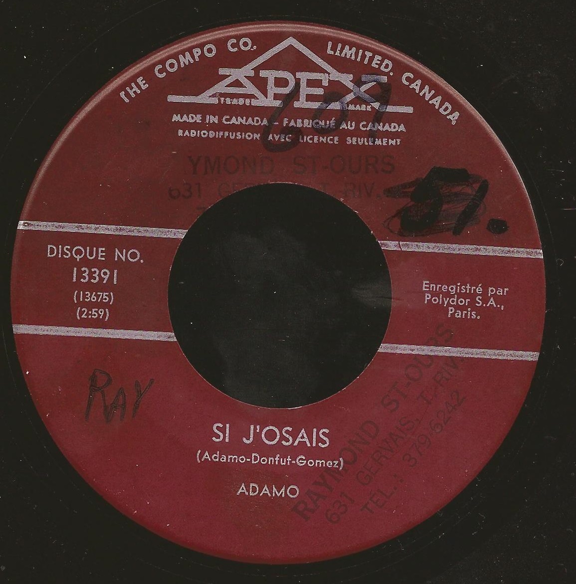 ?? 61....3019....ADAMO..Si j'osais (3019 A)/Laurence (3019 B)