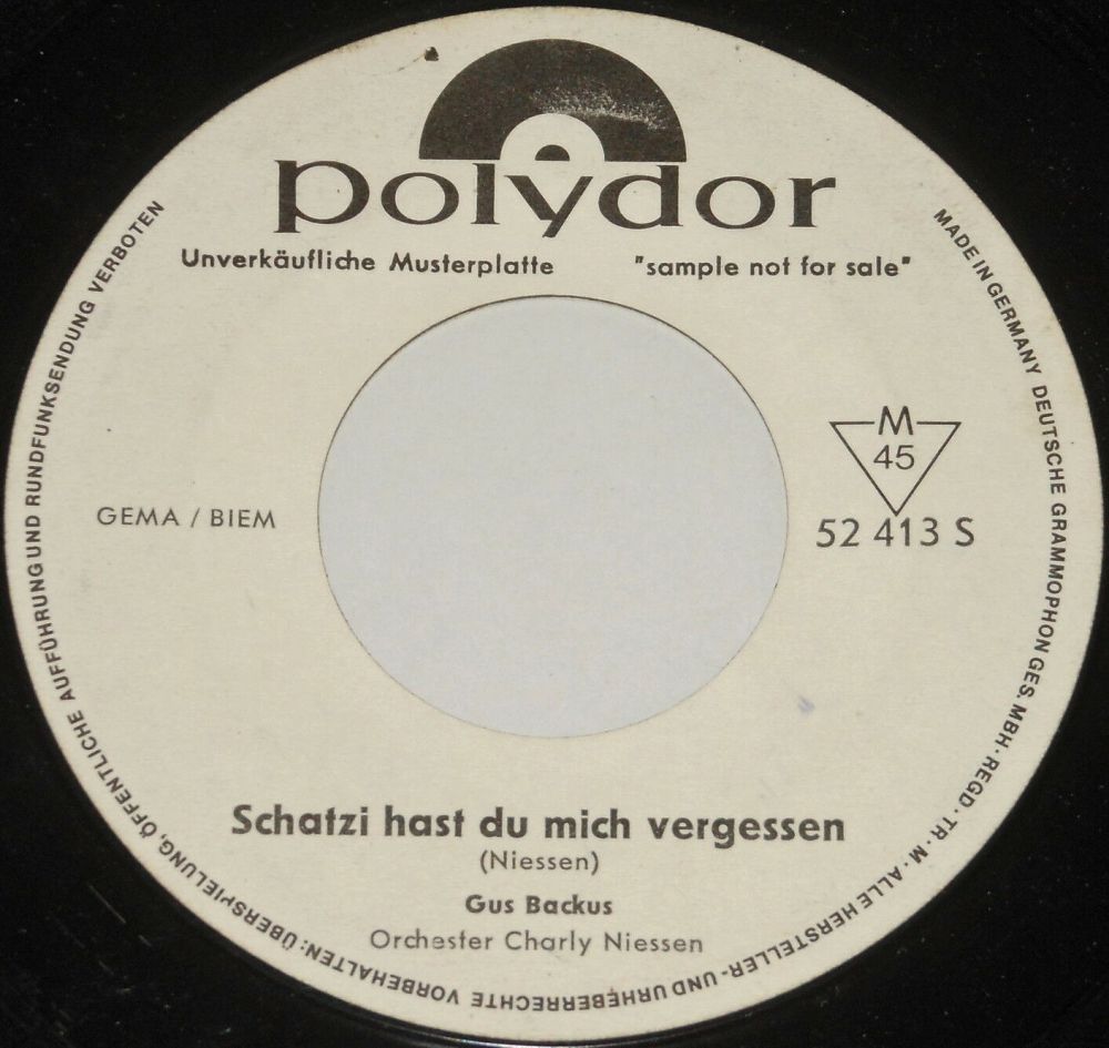 12 64….52 413 S….Gus Backus Orchester Charly Niessen..Schatzi hast du mich vergessen/ L….Gus Backus Orchester Werner Scharfenberger..Das ist very good