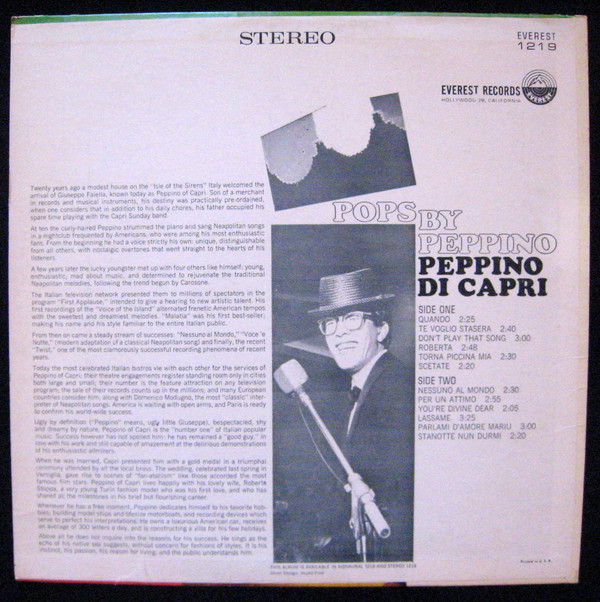 Beitrag #122: Die LP ”POPS BY PEPPINO”, EVEREST LPBR 5219, Mono, bzw. BRST 1219, Stereo , war