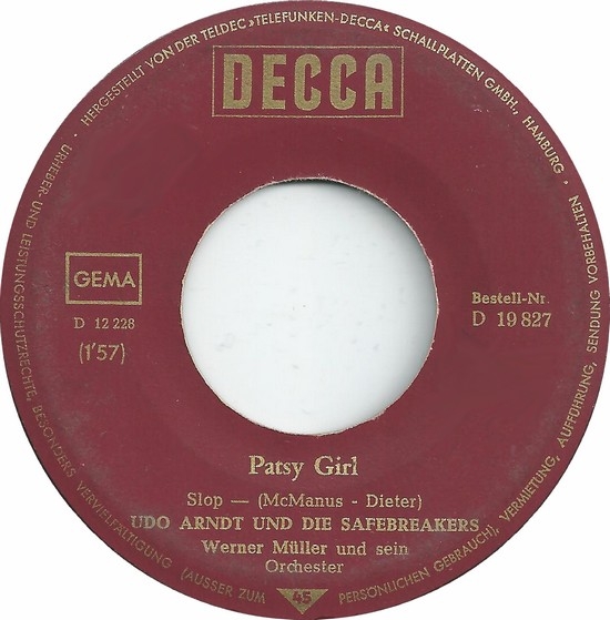 Da ich natürlich auch die Hits der Beat-Ära kenne, hat mich deine Mitteilung sehr gewundert, denn du schriebst von einem Instrumentalsong, obwohl "Patsy Girl", sowohl als Erstveröffentlichung auf HIS MASTER'S VOICE, bei uns auf ELECTROLA, als auch auf IMPERIAL in den USA, immer ein Vokaltitel war. Oder habe ich etwas falsch verstanden?