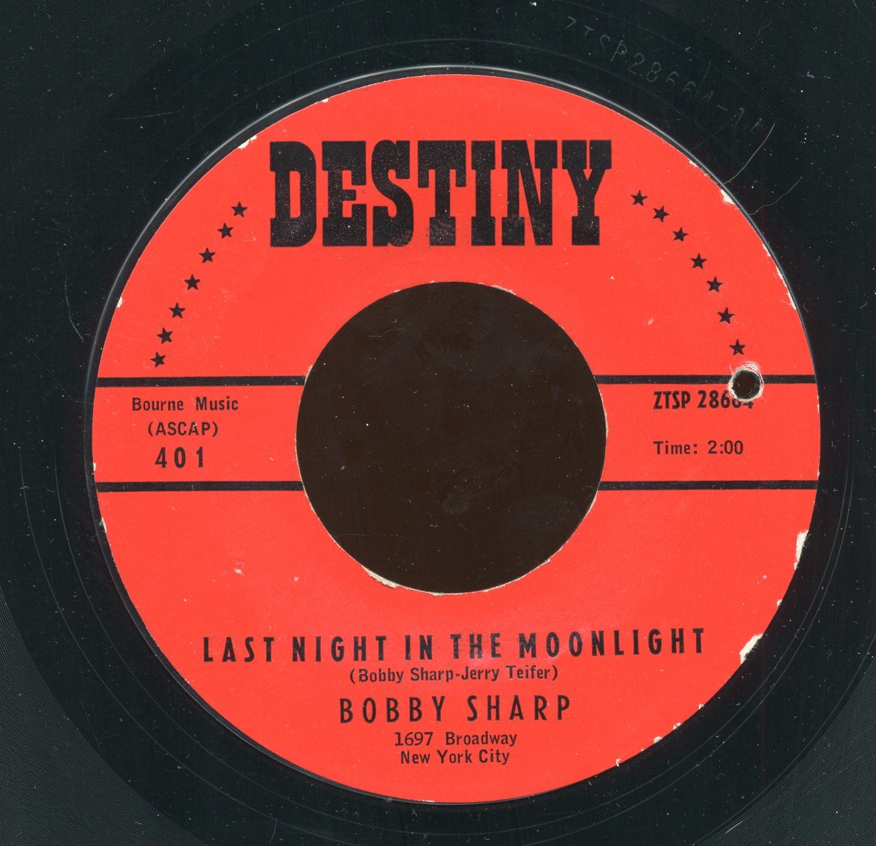 01 59....4 0 1....BOBBY SHARP..Last Night In The Moonlight (ZTSP 28664)/I Love You My Baby (ZTSP 28665)