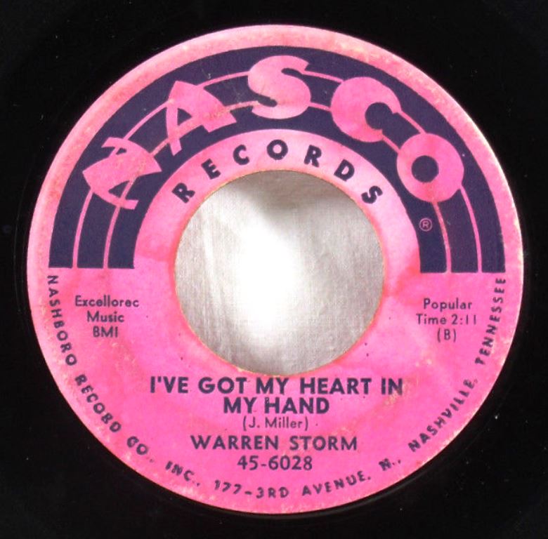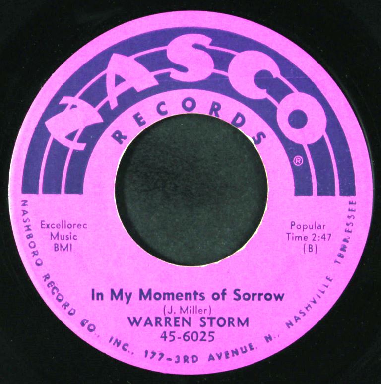 Miller überzeugte Nasco Records aus Nashville, eine 45-RPM-Platte mit Storms Version der alten Country-Komposition „Prisoner’s Song“ zu veröffentlichen; die B-Seite war „Mama Mama Mama (Look What Your Little Boy’s Done)“. Die Veröffentlichung schaffte es in die Billboard Hot 100 und beide Songs wurden für Storm zu lebenslangen Standards. Storm war in den späten 1950er und 1960er Jahren auch Session-Schlagzeuger für Miller und trat bei Dutzenden von Swamp-Blues-Sessions für Excello von Künstlern wie Lazy Lester, Lightnin' Slim, Katie Webster und Lonesome Sundown auf.