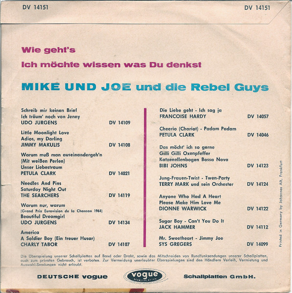 1964 Vogue 14151 ("Wie Geht’s"/"Ich Möchte Wissen Was Du Denkst" & Die REBEL GUYS),