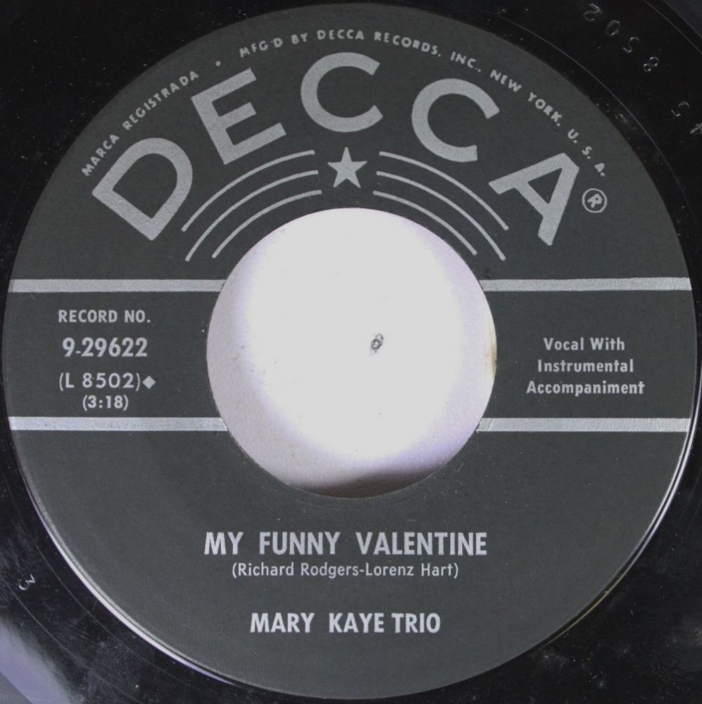 09 55....9-29622....MARY KAYE TRIO..My Funny Valentine (45-L 8502)/Mad About The Boy (45-L 8503)