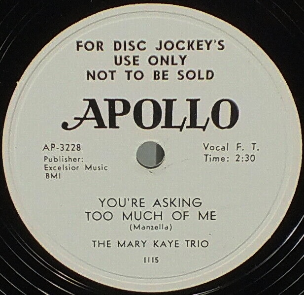 06 49....1 - 230 (38495)….MARY KAYE TRIO Orch. under the direction of George Wyle..I'm In The Mood For Love/The Monkey Song