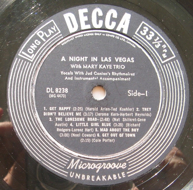 11 55....9-29761....MARY KAYE TRIO..The Lonesome Road (45-L 8756)/Get Out Of Town (45-L 8504)