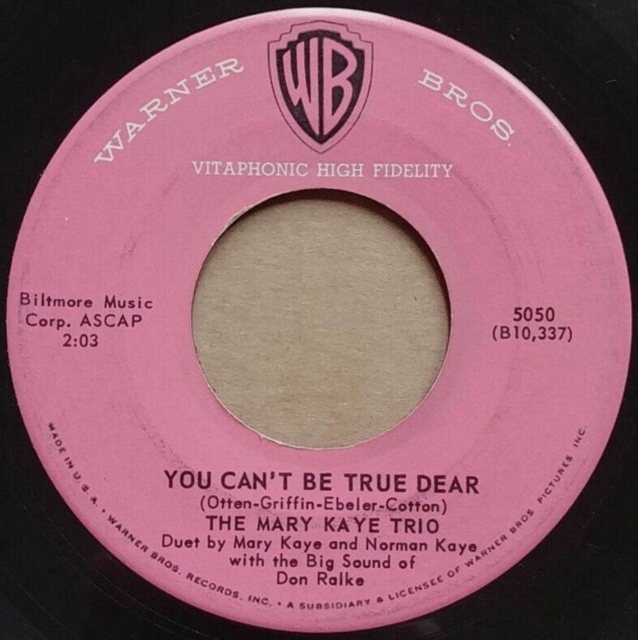 03 59....5050....THE MARY KAYE TRIO DUET BY MARY KAYE AND NORMAN KAYE with The Big Sound of Don Ralke..You Can't Be True, Dear (B10,337)/THE MARY KAYE TRIO VOCAL BY MARY KAYE with The Big Sound of Don Ralke..Because Of You (B10,338)