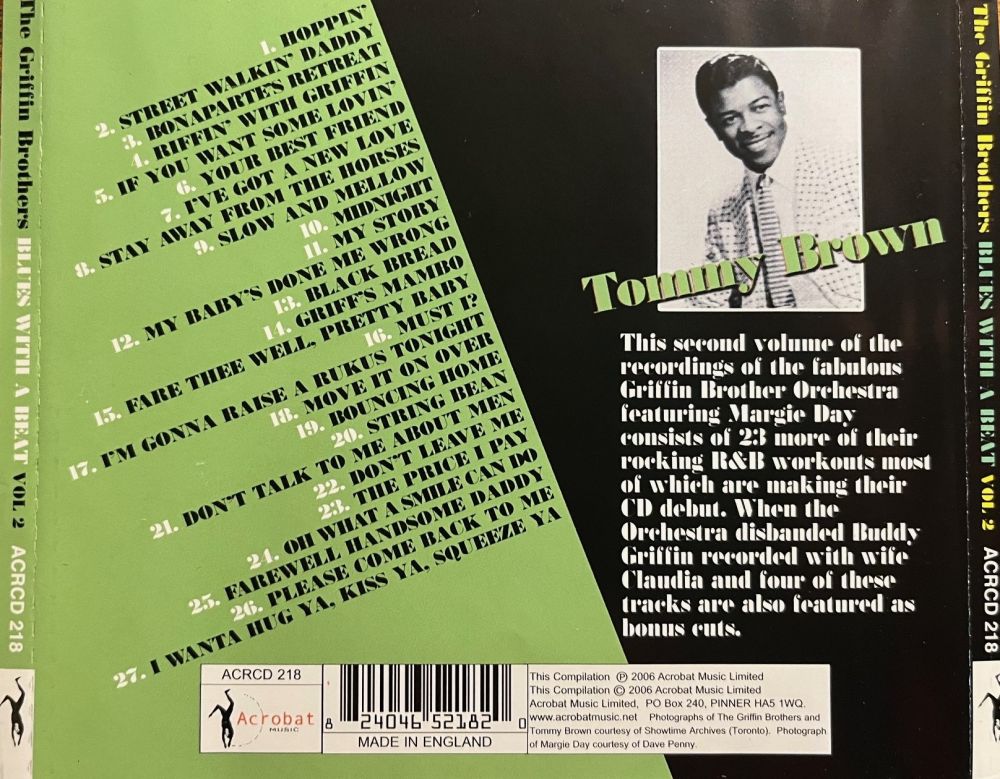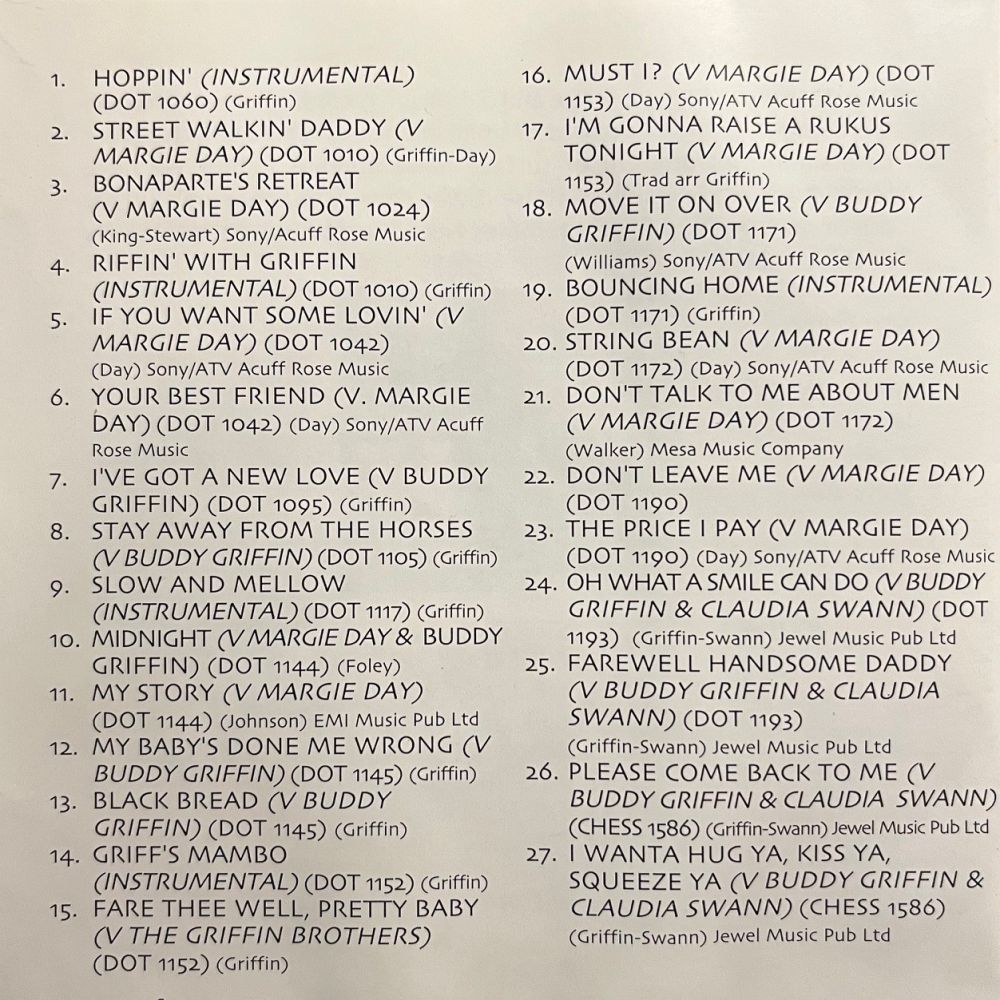 Bei den Griffin Brothers aus der Gegend um New York in #1 auf CHOICE handelt es sich um ein weißes männliches Gesangsduo, welches diese zwei Titel im Stile der Everly Brothers darbietet. Ich habe mir die Single nach langer Zeit jetzt nochmals angehört - beide Titel nicht schlecht - und ich kann die bei cat45 gemachte Aussage nur bestätigen. Eine Verbindung zu den obigen Griffin Brothers ist sowieso ausgeschlossen und zu den Brüdern Rex und Buddy aus Kalifornien passen weder der Stil noch die Adresse. Da dieses Duo offenbar nur diese eine Single auf den Markt brachte, würde ich sie weiterhin in diesem Thread belassen.