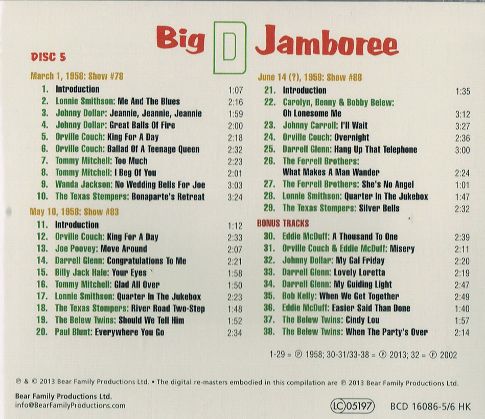 Ed McLemore ihn im 'Big D Jamboree' mit einigen Dawson-Songs