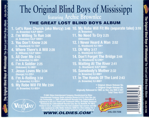 Die Singles der Blind Boys Of Mississippi (Jackson Harmoneers) bis 1963:
