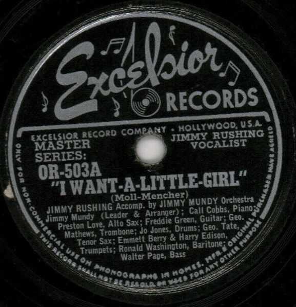 ?? 50....3....JIMMY RUSHING with Johnny Otis Orchestra..My Baby's Business (JR 141 A)/Jimmy's Round The Clock Blues (JR 142 A) (EXCELSIOR 141/142)