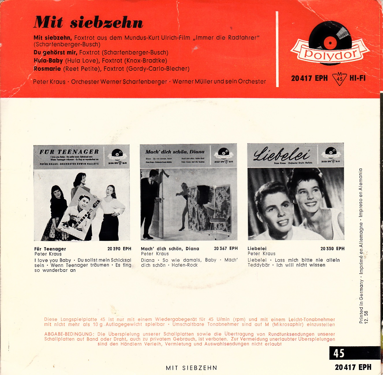 Auch der Antipeterkrausler hat eine EP von Peter und die möchte er natürlich herzeigen. Die Hülle ist zwar nicht echt, da hat Einer mit dem Kopierer herum gebastelt, aber als Aufputz reicht es allemal.
