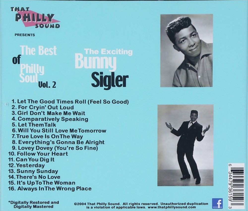 PARKWAY 12 66….P-123-A….BUNNY SIGLER..Girl Don't Make Me Wait/-B….Always In The Wrong Place (At The Wrong Time) 06 67….P-153-A….BUNNY SIGLER..Let The Good Times Roll and Feel So Good/-B….There's No Love Left (In This Old Heart Of Mine) DECCA 08 67….32183….BUNNY SIGLER Vocal With Chorus And Instrumental Accompaniment Arranged By JIMMY WISNER..Will You Love Me Tomorrow (117,112)/BUNNY SIGLER Vocal With Chorus And Instrumental Accompaniment Arranged By LeROY GLOVER..Let Them Talk (116,433)