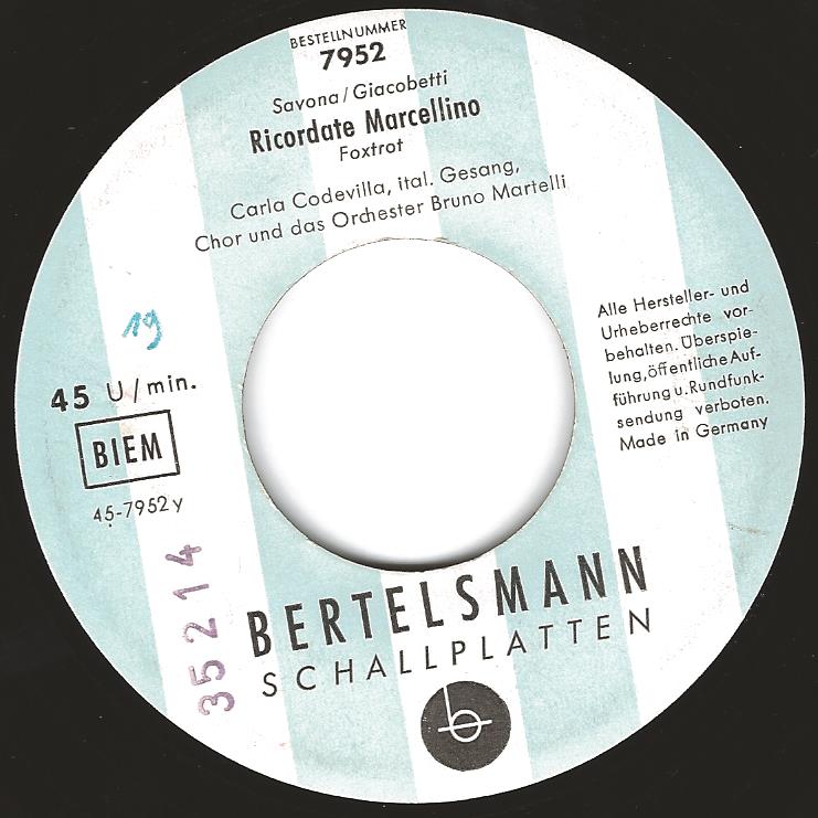 CARLA CODEVILLA: Ricordate Marcellino (italienisch) (45-7952 y)