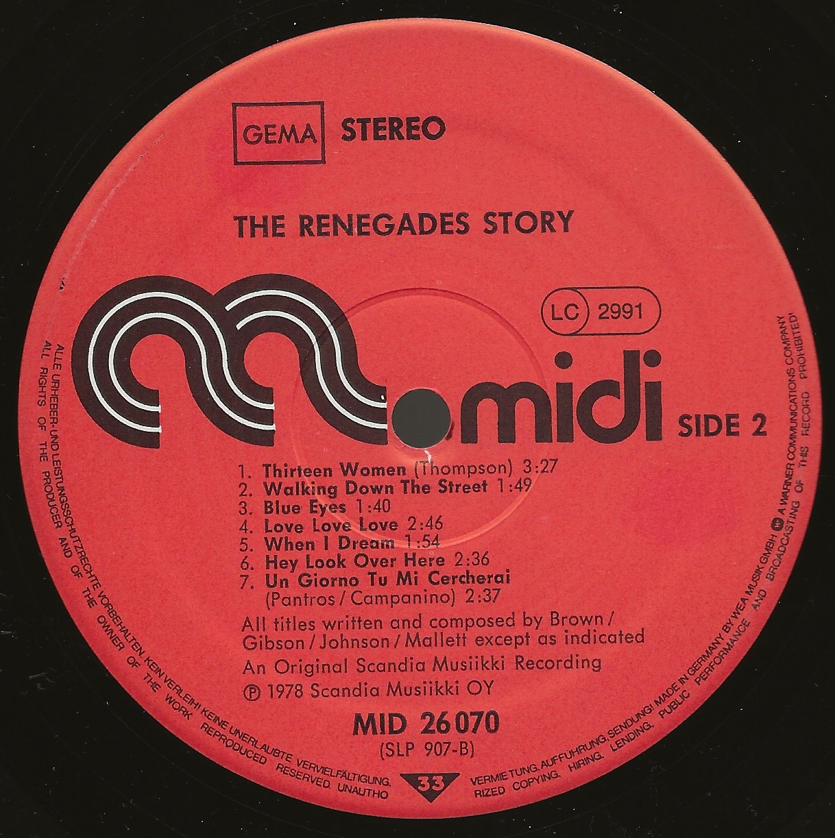 Renegades auf dem Sampler "What a way to die" mit "13 women" vertreten