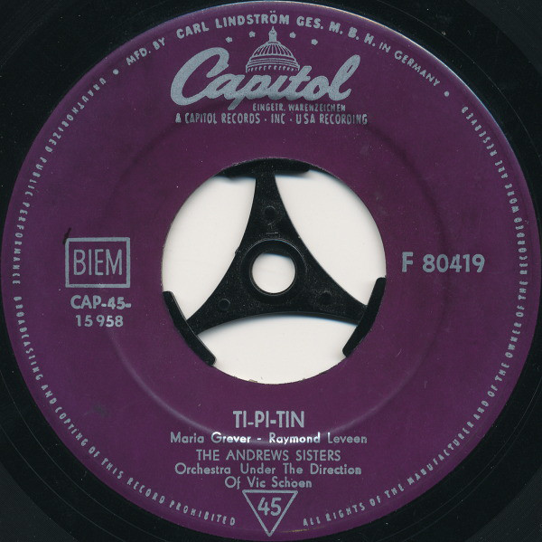 Einige Versionen "Ti-Pi-Tin".. Anhänge an diesem Beitrag Dateiname: Nova3.jpg Dateigröße: 24.44 KB Titel: Heruntergeladen: 298 Dateiname: Grever1.jpg Dateigröße: 143.71 KB Titel: Heruntergeladen: 300 Dateiname: Andrews Sis1.jpg Dateigröße: 91.58 KB Titel: Heruntergeladen: 294
