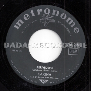 Die B-Seite der METRONOME-Single DM 228 war ebenfalls eine Cover-Version und zwar von Umberto Bindi, der es als "Arrivederci", wie die deutschsprachige Version, auf RICORDI SRL 10-029 im März 1959 auf den Markt brachte (siehe Posting aus dem Netz).