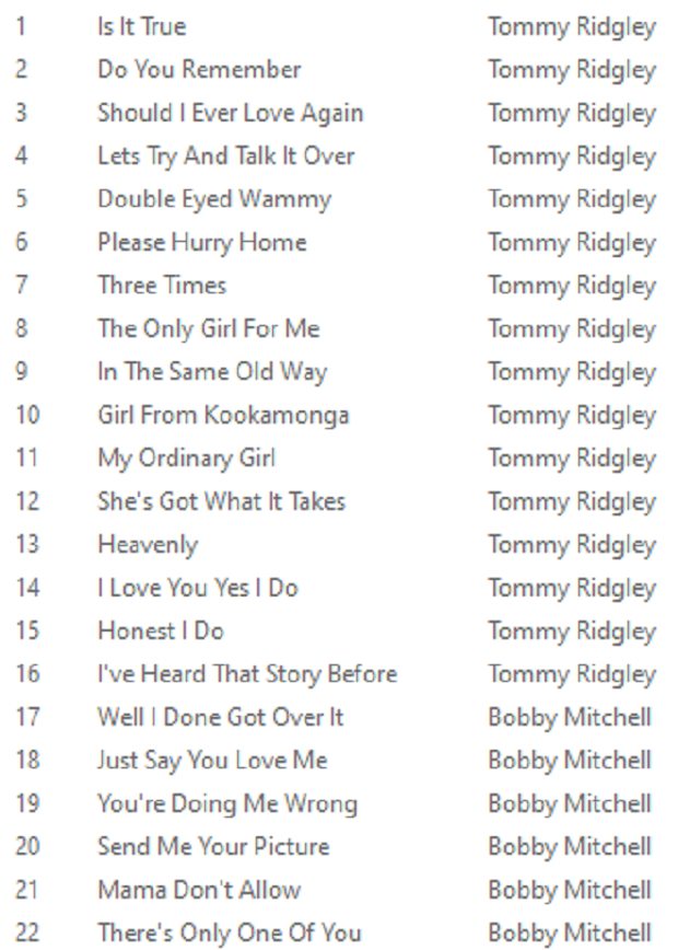 00 69….728…. TOMMY RIDGLEY..I'm Asking Forgiveness/There Is Something On Your Mind