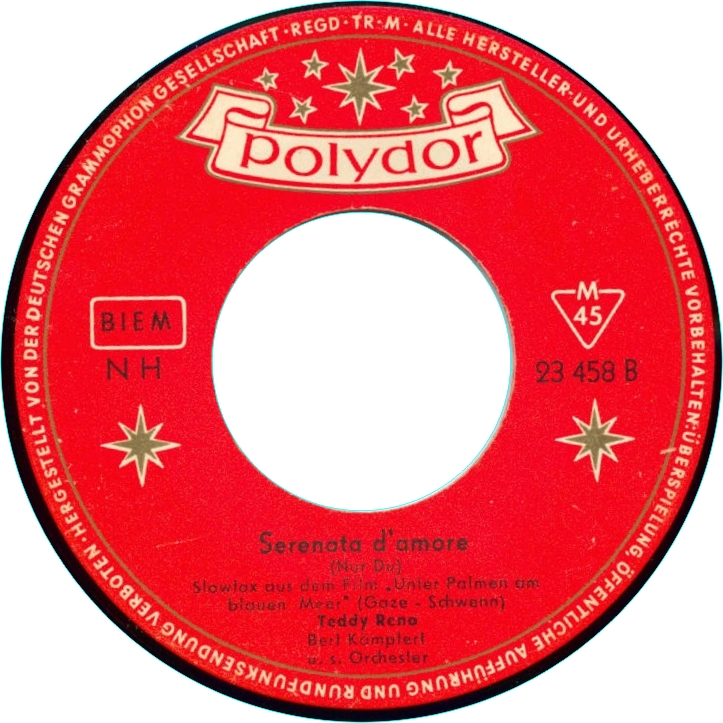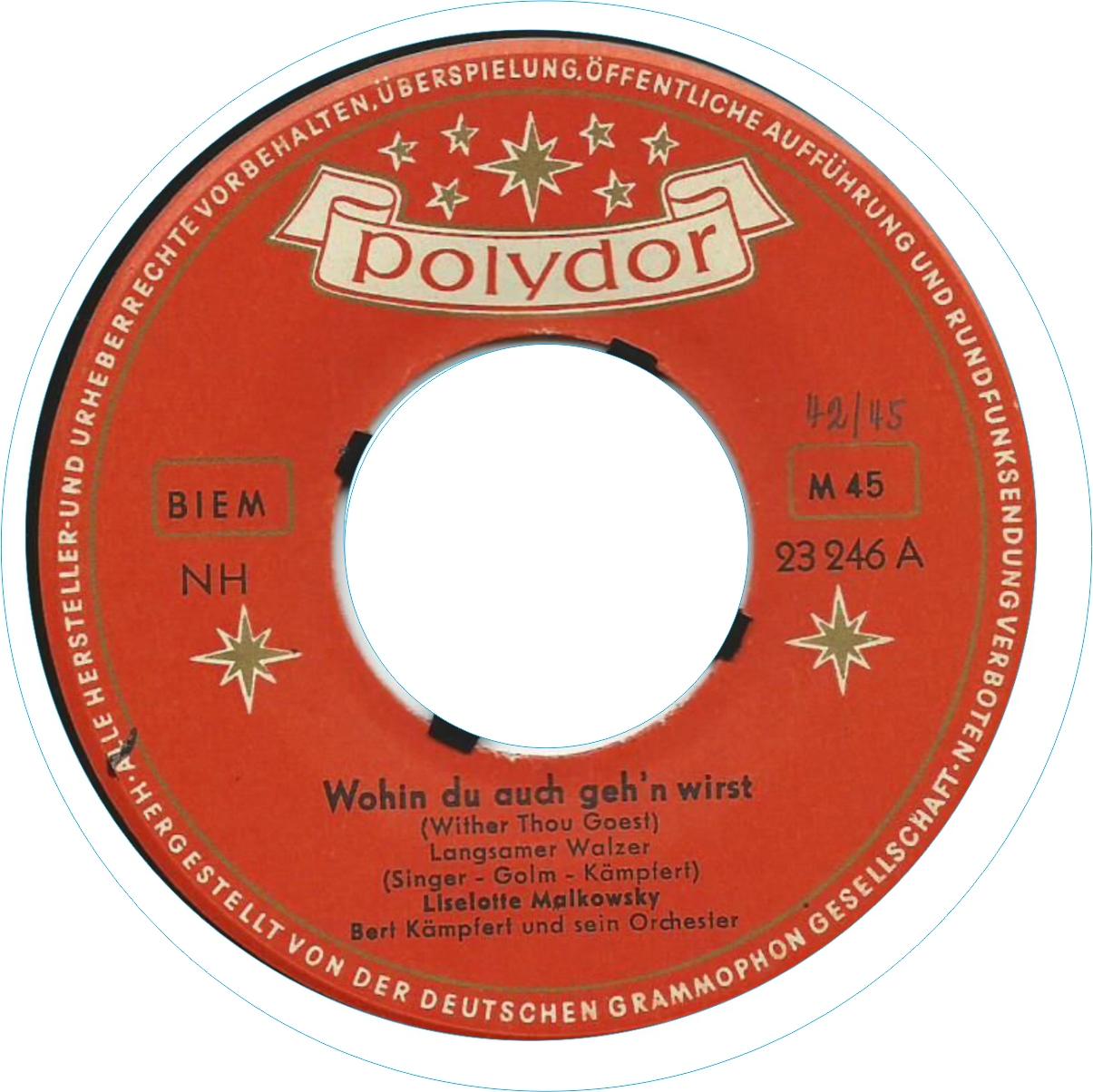 | Information: | 0 023 212 - SI - Bert Kaempfert & Rudi Schuricke - Wer weiß, wann wir uns wiederseh´n - So lang dein Herz nicht spricht - Polydor - GER - Label A |