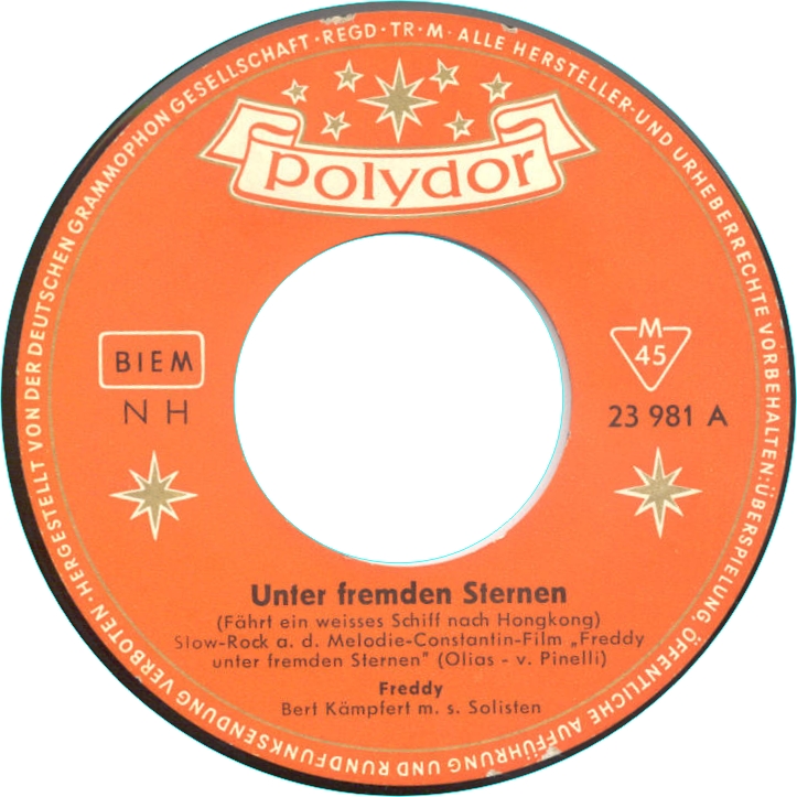 | Information: | 0 023 981 - SI - Bert Kaempfert & Freddy Quinn - Unter fremden Sternen - Du musst alles vergessen - Polydor - GER - Front1 |