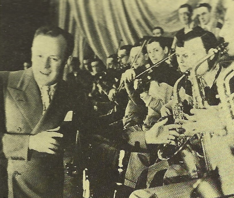 Yet another ‘first’ for the band occurred in the summer of 1935, when they were working at Twickenham Film Studios, on their own vehicle, She Shall Have Music, a similar production to their recent revue at the Palladium. The film featured the band playing on a broadcasting ship touring the world and showed the bands’ varied talents of comedy, singing and dancing, with the grand finale vocal taken by Jack himself.