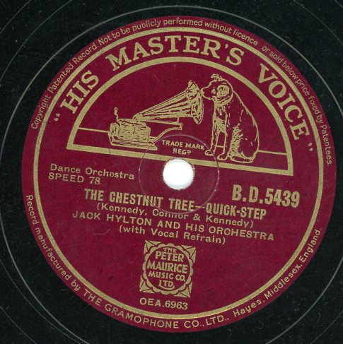 In the autumn of 1931, Hylton’s long-standing recording contract with HMV was due for renewal and he stunned the dance band world by instead signing with relative newcomers Decca. Jack was, in fact, a major shareholder in Decca and this obviously affected his decision to record for the three-year-old company. Decca were in need of a big name on their books and Hylton provided that, creating a great deal of publicity for the company and adding greatly to their sales. Despite the lesser quality of the sound recordings, the Decca releases sold just as well as the HMV titles and included one of Hylton’s greatest successes, Rhymes, which is discussed elsewhere.