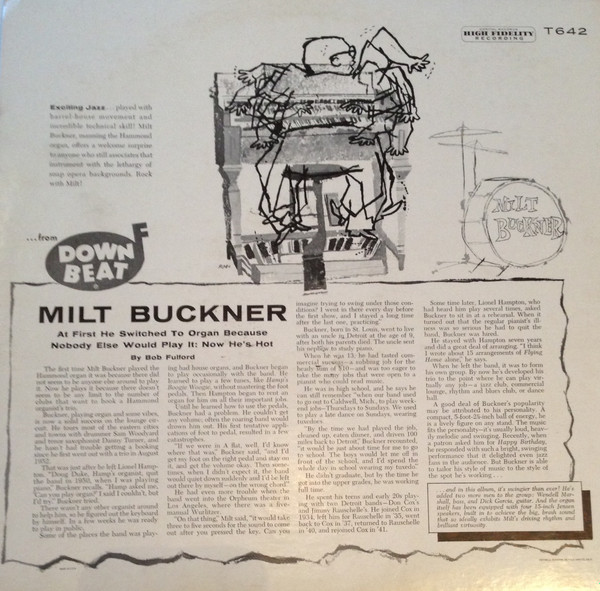 Milt Buckner war von April 1955 bis Juli 1957 bei Capitol Records tätig. Im Dezember 1959 nahm er in New York seine erste Argo-LP mit dem Gitarristen Kenny Burrell und dem Bassisten Joe Benjamin auf. Weitere Argo-Sessions fanden 1960 und 1961 in Chicago statt, und er arbeitete 1962 und 1963 mit dem Bethlehem-Label in Cincinnati zusammen. Im März 1966 wurde ein Auftritt mit dem Saxophonisten Illinois Jacquet live bei Lennie's am Turnpike in West Peabody, Massachusetts, aufgenommen und anschließend beim Cadet-Label veröffentlicht.