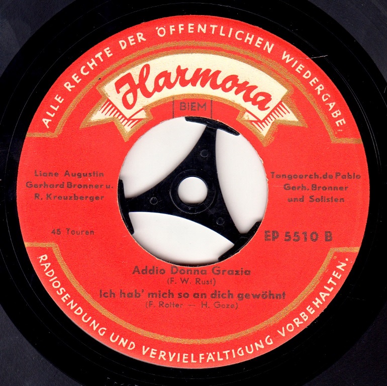 04 56....9758-45....LIANE AUGUSTIN und das Oesterr. Rundfunk-Tanzorchester Leitung: Carl de Groof..Lass die Welt darüber reden (Wake the town and tell the people)/Wie schön, dass es dich gibt (The Things I Didn't Do)