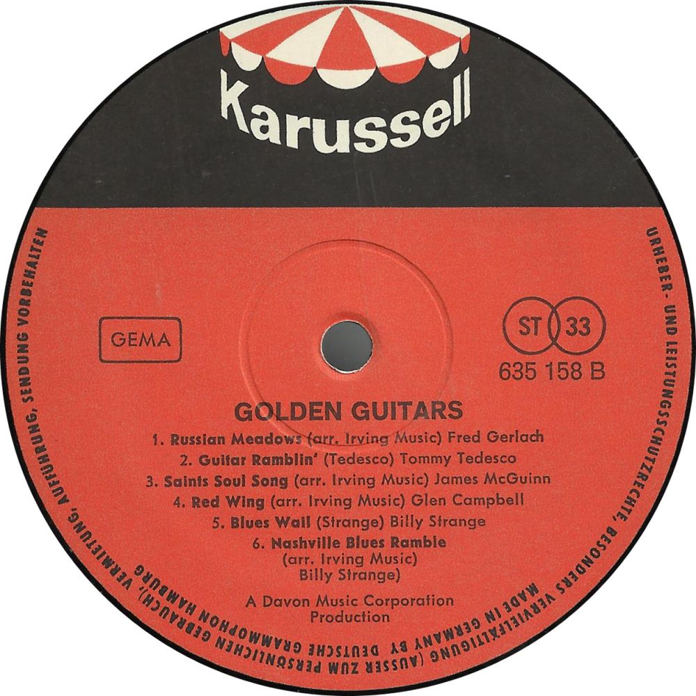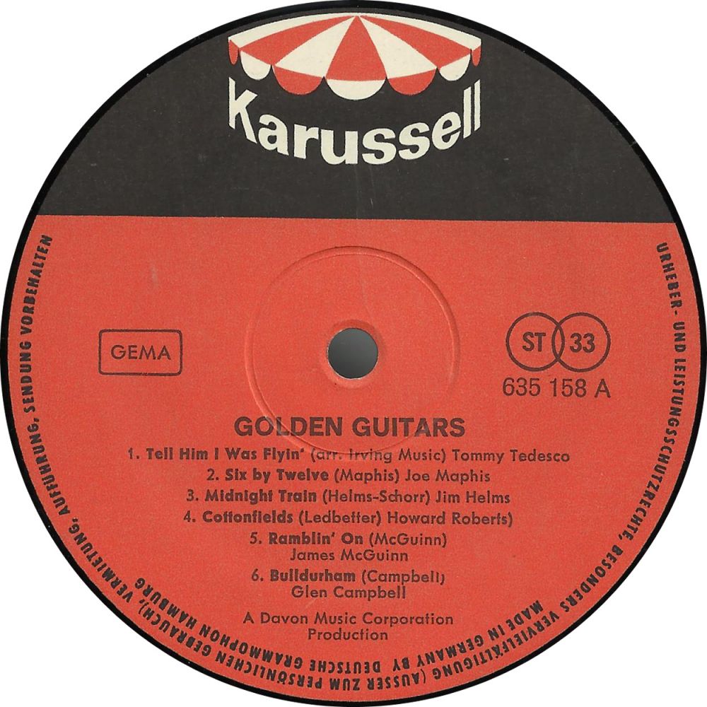 Die Aufstellung mit Ergänzungen: 01 - The Marketts - Batman Theme 01 66:WARNER BROS. 5696 02 - Hal Blaine & The Young Cougars - Challenger II 12 63:RCA Victor 47-8282 03 - The Avalanches - Avalanche 12 63:WARNER BROS. 5407 04 - The De-Fenders - Skin Diver ?? 63:DEL-FI-LP DFLP-1242 05 - The Catalinas - Banzai Washout 07 64:RIK S 113-64 06 - Jan & Dean - Skateboarding - Part 1 08 64:LIBERTY-LP LRP-3368 07 - The Piltdown Men - Gargantua 05 61:CAPITOL 4581 08 - Hal Blaine & The Young Cougars - The Phantom Driver ?? 63:RCA Victor-LP LPM 2834 09 - The Knights 5+1 - On The Move ?? 67:JUSTICE-LP JLP 156 10 - Hal Blaine & The Young Cougars - Big ''T'' ?? 63:RCA Victor-LP LPM 2834 11 - The De-Fenders - Rum Runner ?? 63:DEL-FI-LP DFLP-1242 12 - The De-Fenders - Road Runner ?? 63:DEL-FI-LP DFLP-1242 13 - Jack Nitzsche - The Lonely Surfer 07 63:REPRISE R-20,202 14 - Jan & Dean - Walk On The Wet Side 08 64:LIBERTY-LP LRP-3368 15 - The Marketts - Vanishing Point 03 64:WARNER BROS. 5432 16 - The T-Bones - Haulin' Henry 05 64:LIBERTY-LP LRP-3363 17 - Jack Nitzsche - The Last Race 02 64:REPRISE 0262 18 - The T-Bones - Competition Coupe 05 64:LIBERTY-LP LRP-3363 19 - The T-Bones - No Matter What Shape (Your Stomach's In) 10 65:LIBERTY 55836 20 - The Routers - Let's Go (Pony) 06 62:WARNER BROS. 5283 21 - Jack Nitzsche - Surf Finger - es gibt keine Vinyl-Veröffentlichung 22 - The T-Bones - Rail Vette 02 64:LIBERTY 55677 23 - The Marketts - Out Of Limits 10 63:WARNER BROS. 5391 24 - The Avalanches - Ski Surfin' ?? 63:WARNER BROS.-LP W 1525 25 - The Marketts - Bat Cave ?? 66:WARNER BROS.-LP W 1642 26 - Tommy Tedesco - Exodus ?? 62:DOT-LP DLP-3449 27 - The De-Fenders - Movin' And Groovin' ?? 63:DEL-FI-LP DFLP-1242 28 - Tommy Tedesco - Begin The Beguine ?? 62:DOT-LP DLP-3449 29 - The Routers - Grandstand Stomp ?? 63:WARNER BROS.-LP W 1490 30 - The Avalanches - Midnight Sun ?? 63:WARNER BROS.-LP W 1525 31 - The Knights 5+1 - Tomatoes - gab es vermutlich nie auf Vinyl 32 - The Marketts - Batmobile ?? 66:WARNER BROS.-LP W 1642 33 - Tommy Tedesco - Bonanza ?? 64:DOT-LP DLP-9263 34 - Marius Constant - The Twilight Zone - gab es vermutlich nie auf Vinyl 35 - Jan & Dean - Old Ladies Seldom Power Shift (Bucket Seats) 09 64:LIBERTY-LP LRP-3377 36 - The Marketts - Other Limits ?? 63:WARNER BROS.-LP W 1537 37 - Hal Blaine & The Young Cougars - Gear Change ?? 63:RCA Victor-LP LPM 2834 38 - The Avalanches - I've Got My Love To Keep Me Warm ?? 63:WARNER BROS.-LP W 1525 39 - The Routers - Mating Call ?? 63:WARNER BROS.-LP W 1490 40 - Jan & Dean - Barons, West L.A 04 64:LIBERTY-LP LRP-3361 41 - The Marketts - Riddler ?? 66:WARNER BROS.-LP W 1642 42 - Hal Blaine & The Young Cougars - The Traps ?? 63:RCA Victor-LP LPM 2834 43 - Jan & Dean - Batman Theme 03 66:LIBERTY-LP LRP-3444 44 - Tommy Tedesco - The Pink Panther Theme ?? 64:DOT-LP DLP-9263 45 - The Routers - Charge! ?? 64:WARNER BROS.-LP W 1559 46 - The De-Fenders - Wild One 05 63:WORLD PACIFIC X-382 47 - The Marketts - Collision Course ?? 63:WARNER BROS.-LP W 1537 48 - The Avalanches - Winter Evening Nocturne ?? 63:WARNER BROS.-LP W 1525 49 - The Marketts - Re-Entry ?? 63:WARNER BROS.-LP W 1537 50 - The T-Bones - Hot Rod U.S.A. 05 64:LIBERTY-LP LRP-3363 51 - Tommy Tedesco - Freight Train ?? 64:DOT-LP DLP-9263 52 - Eddie Albert & Eva Gabor - Green Acres (Bonus Track) 08 66:COLUMBIA 4-43757 Auf mich als Single-Freak hat Tom Tedesco leider vergessen. Lediglich im Dezember 1965 brachte er seine einzige Single auf den Markt, das war aber für mich leider schon zu spät.