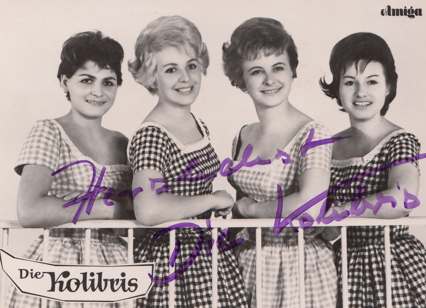 Rudolf Manfred Klein, ein Musikredakteur des Deutschlandsenders, gründete im Jahre 1958 die Kolibris, die ab 1959 "schallplattenaktiv" wurden. Seine Gattin Eva Klein war Mitglied dieses Damen-Gesangsquartettes. Mit Hilfe von Heino's Hinweisen und Daten aus dem Netz habe ich, bezogen auf den Zeitraum unserer Rocknroll-Ära versucht, die personellen Wechsel bei den Kolibris zu eruieren und ich denke, es ist mir im Großen und Ganzen gelungen.