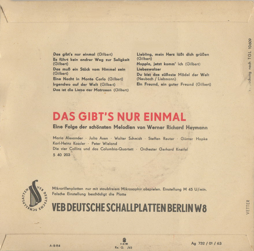 ?? 59....4 50 102 A....Julia Axen und Heinz Schultze Georg Nöckel mit seinen Solisten..Wenn in der Schönhauser/ B....Die Pico-Bellos und die Kolibris Großes Tanzorchester des Deutschlandsenders Leitung: Adalbert Lutter..Das ist Berliner Tempo