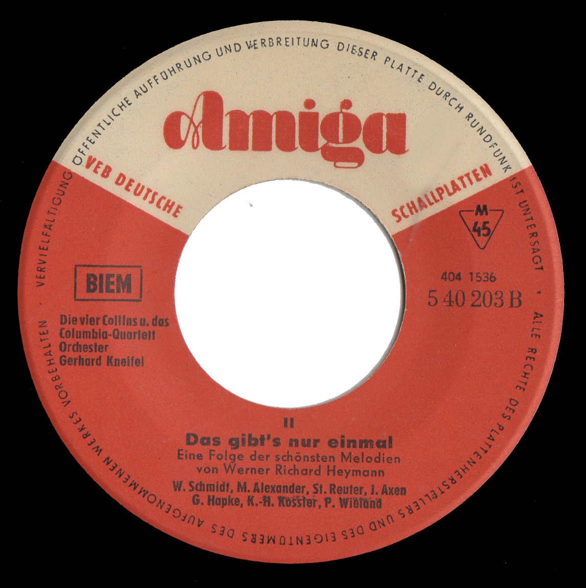 ?? 62....4 50 277 A....Die Kolibris und das Columbia-Quartett Orchester Günter Gollasch..Die herrlichste Zeit meines Lebens// B....Günter Geißler und Chor Orchester Günter Gollasch..Küsse und Rosen