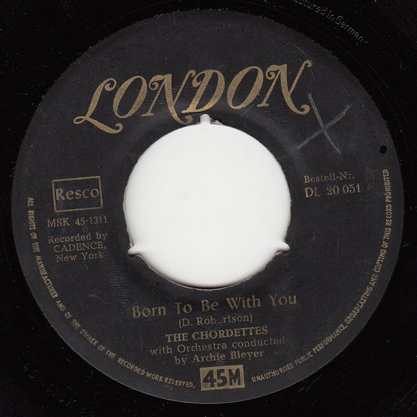 05 56....1291....THE CHORDETTES Orchestra Conducted by ARCHIE BLEYER..Born To Be With You (G80W-4472)/Love Never Changes (G80W-2290)