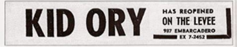 1943 lud der Jazz-Impresario Rudi Blesh den Pionier-Trompeter Bunk Johnson für ein Konzert nach San Francisco ein. Es war ein Erfolg, und Blesh plante, ein weiteres Konzert von Bunk Johnson zu geben. Bunk kontaktierte Ory in Los Angeles und bat ihn, eine Gruppe für diesen Anlass zusammenzustellen. Ory wählte Mutt Carey an der Trompete, Wade Whaley an der Klarinette, Buster Wilson am Klavier, Frank Pasley an der Gitarre, Ed Garland am Bass und Everett Walsh am Schlagzeug. Vor dem Hauptkonzert und in der Pause traten unter anderem auch die Revivalisten Pat Patton, Turk Murphy, Clancy Hayes und Al Zohn aus San Francisco auf. Trotz einiger Spannungen darüber, wer die Band leiten würde, verlief das Konzert gut und war besonders vorteilhaft für Ory, da er ihn wieder mit der Hot-Jazz-Bruderschaft bekannt machte.