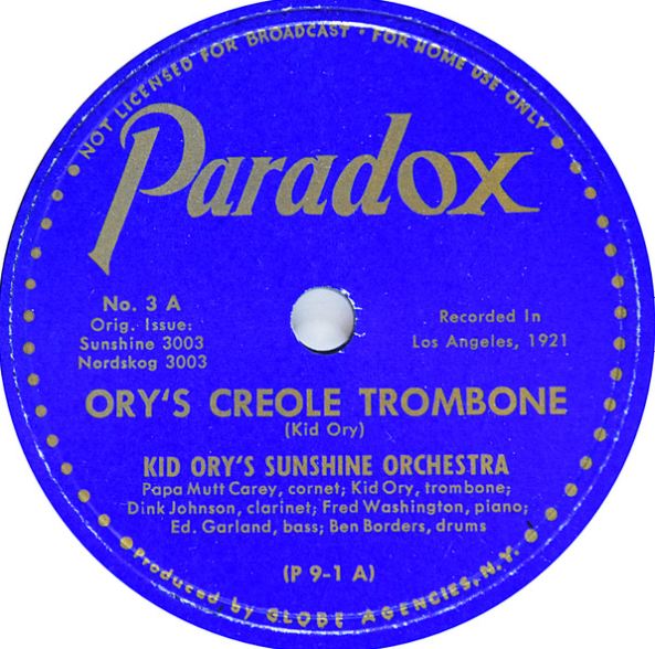Orys Originalkomposition “Ory's Creole Trombone“ gehörte zu den aufgenommenen Liedern. Die Platte wurde zuerst auf dem Nordskog-Label, dann auf dem Spikes-eigenen Sunshine-Label veröffentlicht, was zu zwei verschiedenen Bandnamen führte: Spike's Seven Pods of Pepper Orchestra und Ory's Sunshine Orchestra. Ebenfalls 1922 sendete Orys Band auf dem Sender KWH in Los Angeles. Dies war möglicherweise das erste Mal, dass eine afroamerikanische Band in einer Live-Übertragung Jazz spielte.