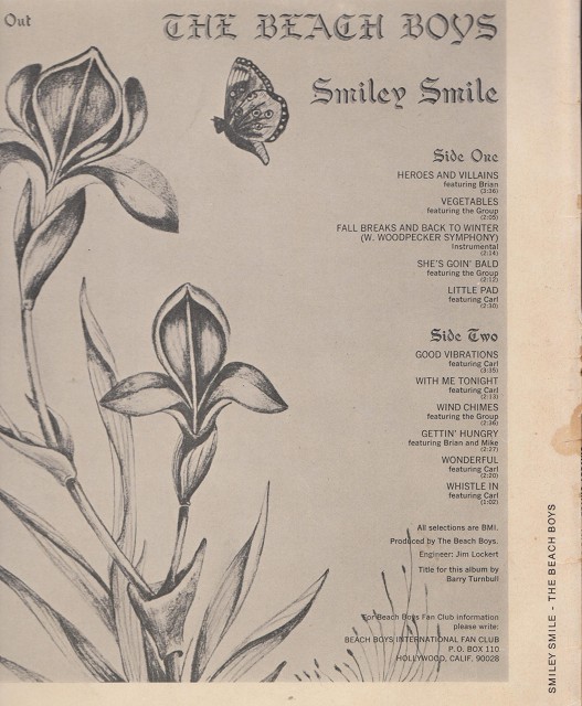 Auf der SMILE Lp (die erst Jahrzehnte später mithilfe von Van Dyke Parks neu aufgenommen und