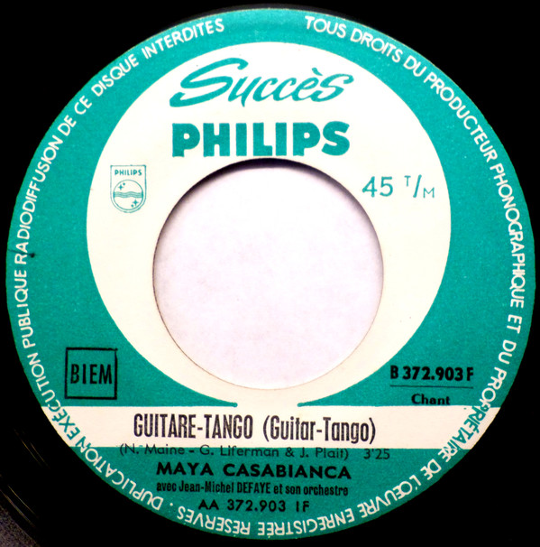 09 61....B 372.903 F....MAYA CASABIANCA avec Jean-Michel DEFAYE et son orchestre..Guitare-Tango (Guitar Tango)/Champs Elysees