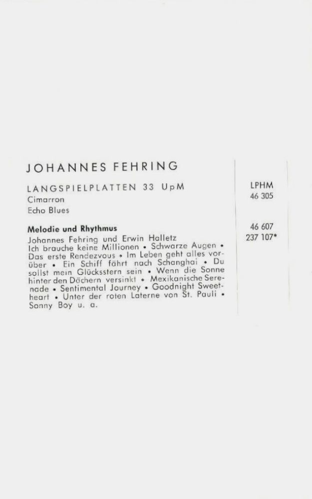 Wie ich bei Heino gerade zufällig entdeckt habe, war Johannes Fehring nicht nur als Lutz Albrecht, sondern auch als John Ferry unterwegs und davon habe ich eine Single mit Presscode K 9 in meiner Sammlung.