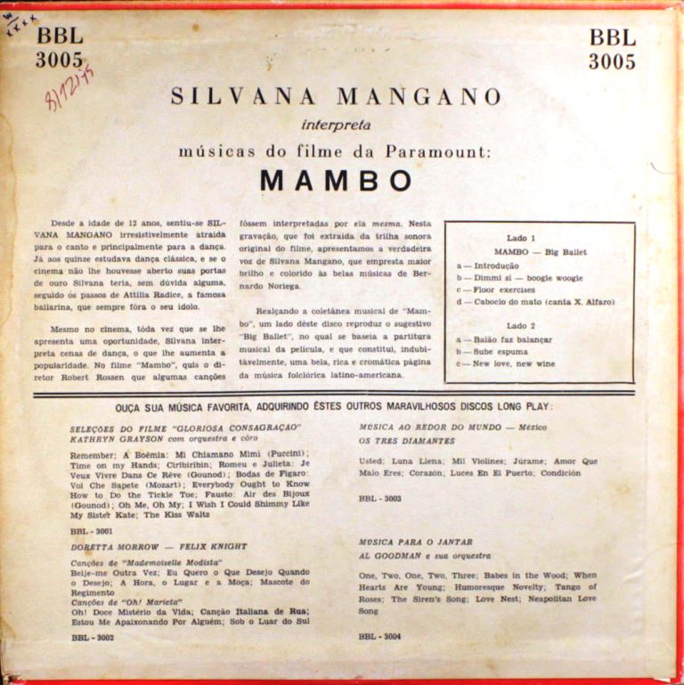 Perez Prado hat für Silvana Mangano ein Instrumental-Stück geschrieben, wovon bereits die "Unverkäufliche" auf der Vorseite gepostet wurde. Mich hat daher interessiert, wie jene Single ausgesehen hat, die zum Kauf angeboten wurde und ich hatte "Netz-Glück".