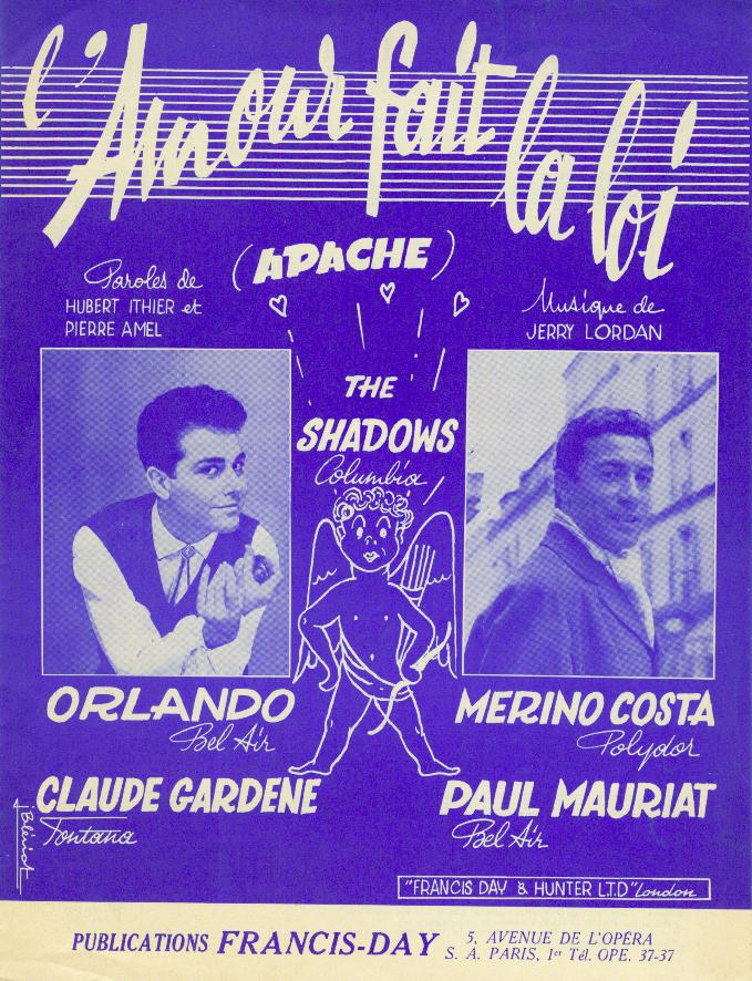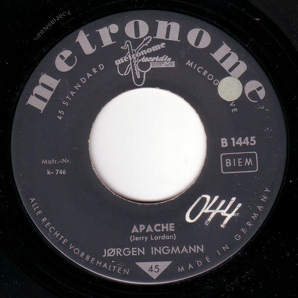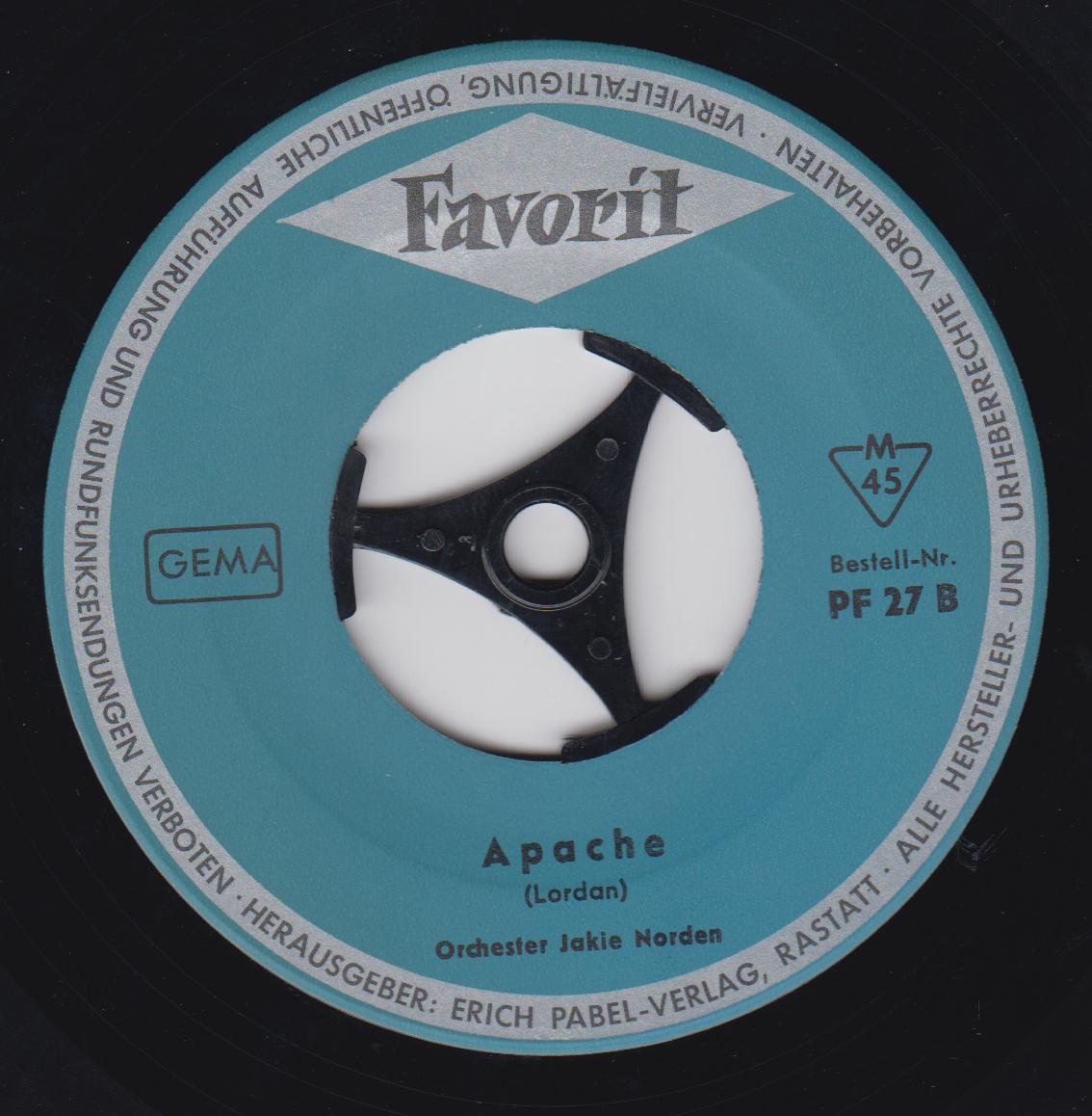 hier das gesuchte Cover und das B-Label der französischen EP von Orlando mit seiner Version von Apache.
