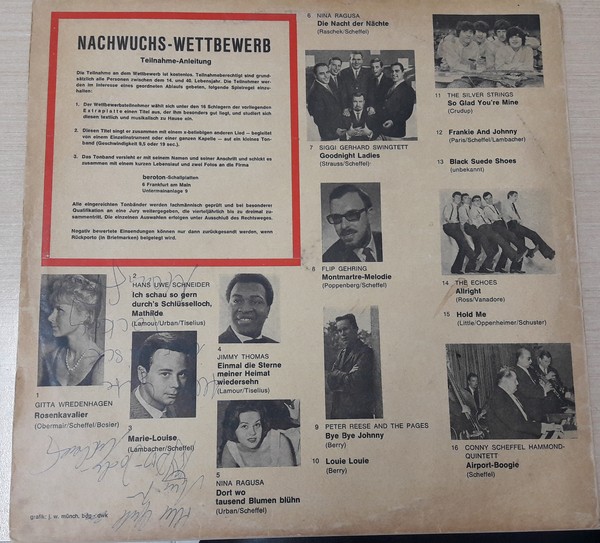 Hier also die Vogue-Interpretin (Britt Hagen/Brigitte Bergen) Brigitte Wredenhagen als GITTA WREDENHAGEN mit "Rosenkavalier" im Herbst 1965. Anhänge an diesem Beitrag Dateiname: Wredenhagen1.jpeg Dateigröße: 93.07 KB Titel: Heruntergeladen: 217 Dateiname: Wredenhagen1b.jpeg Dateigröße: 67.57 KB Titel: Heruntergeladen: 221 Dateiname: Gitta1d.jpg Dateigröße: 70.74 KB Titel: Heruntergeladen: 197