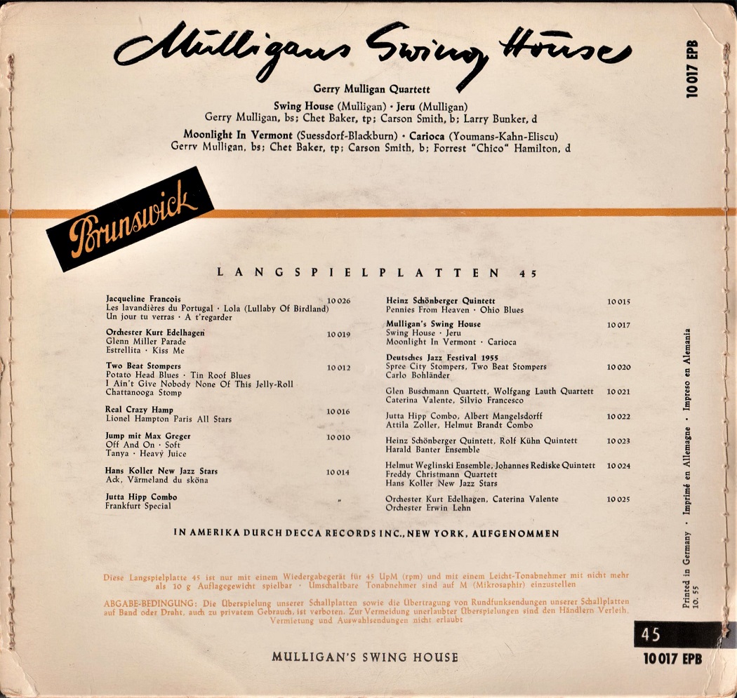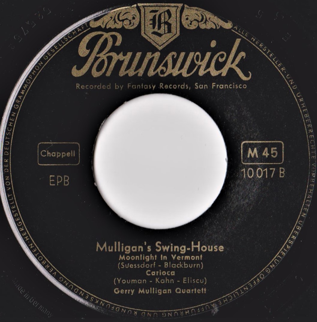 ?? 53....45-602....GERRY MULLIGAN QUARTET Gerry Mulligan, Baritone sax; Chet Baker, Trumpet; Chico Hamilton, Drums; Bob Whitlock, Bass..Frenesi (PJ 232)/Nights At The Turntable (PJ 233)