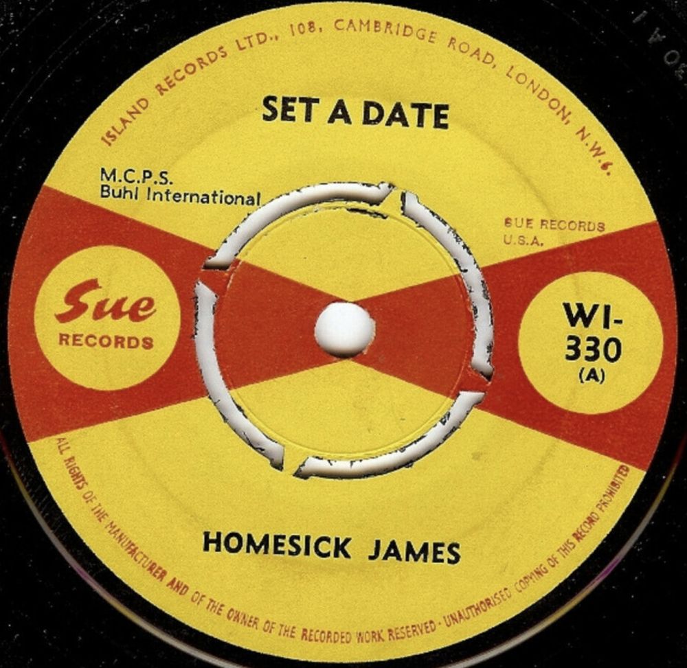 Die Übernahme-Daten der zwei britischen Singles in #17 & #16: SUE (GB) 08 64....WI-319....HOMESICK JAMES..Crossroads (A)/My Baby’s Sweet (B) (USA 746) 02 65....WI-330....HOMESICK JAMES..Set A Date (A)/Can’t Afford To Do It (B) (COLT 632) Keep Searchin’ Gerd