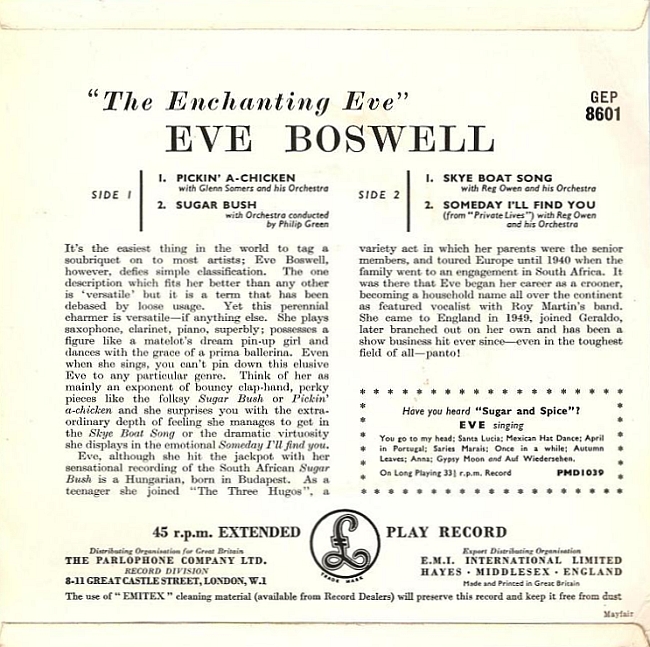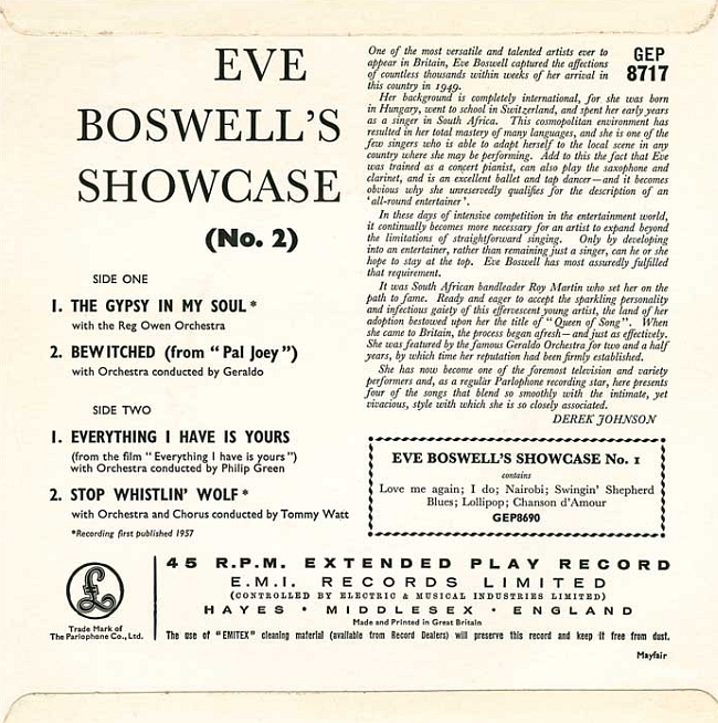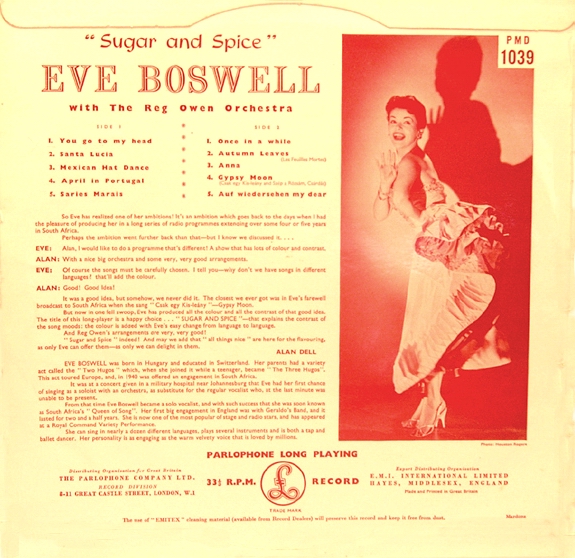 Eve Boswell stammte zwar aus Ungarn hat aber ihre Berufskarriere hauptsächlich in good old England absolviert. Hier ihr Abstecher in den deutschsprachigen Raum:
