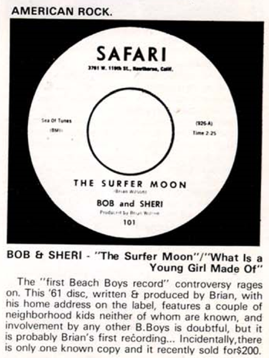 SAFARI(weiß/schwarz - blue wax) Bootleg *) ?? 80....101....BOB and SHERI..The Surfer Moon (926-A)/Humpty Dumpty (926-B)