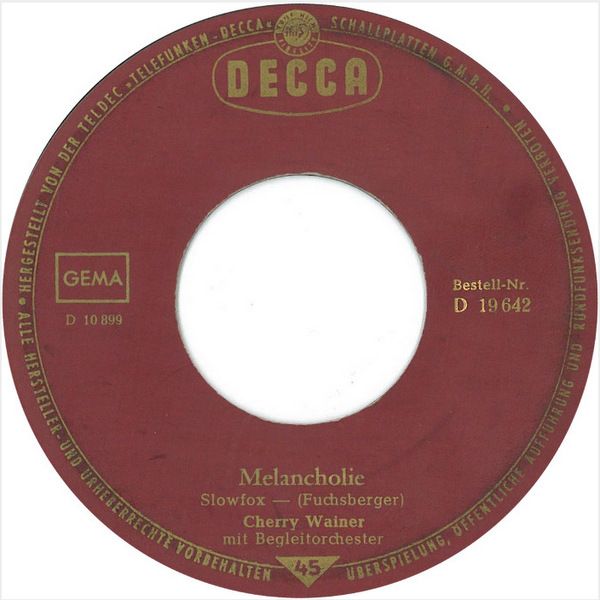 11 64….D 19 642….Cherry Wainer mit Begleitorchester..Melancholy (D 10 899)/Ich habe mir das Leben ganz anders vorgestellt