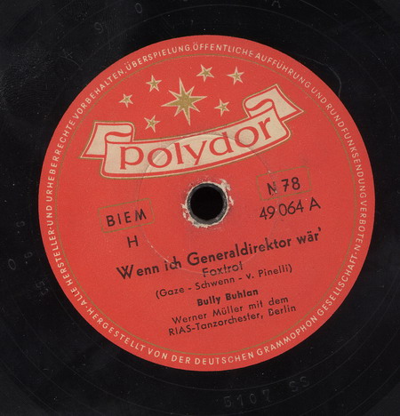 Anfang der 50er Jahre wechselte BULLY BUHLAN zum RIAS-dort begann seine richtig große Schallplattenkarriere bei Polydor,