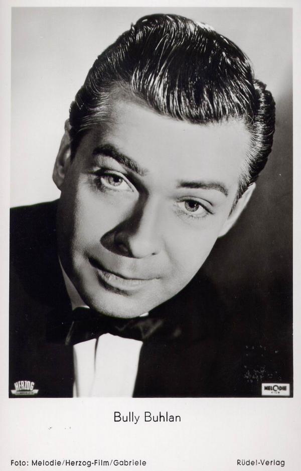mit sentimentalen Liebesliedern, Schlagern im Polka- oder Boogie-Rhythmus u. Liedern, die zu den Geschichten der Nachkriegszeit gehörten, gelang BULLY BUHLAN mit seiner unverwechselbaren Stimme u. seiner persönlichen Note der Durchbruch als Sänger, in der Zeit der 40er und 50er Jahre-zwischen dem Nichts u. dem Wiederaufbau-war er der typische Berliner Junge mit Schnauzer Charme u. Optimismus, die Berliner verehrten ihn u. gaben ihm den Beinamen "Die klingende Luftbrücke",